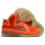 1. Дизайн: Кроссовки выделяются яркой цветовой палитрой, в основном в оранжевых и черных тонах с элементами синего. Этот смелый и насыщенный дизайн привлекает внимание и символизирует динамичность игры Леброна.